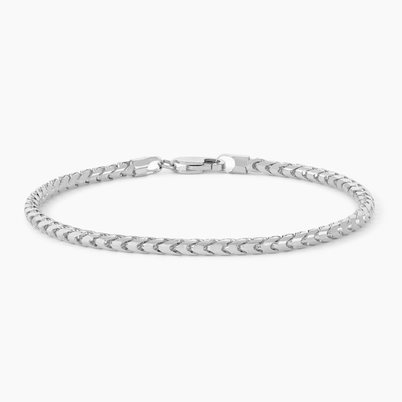 A sleek, flat franco chain with a refined finish and intricate interlocking links that add depth to any look.