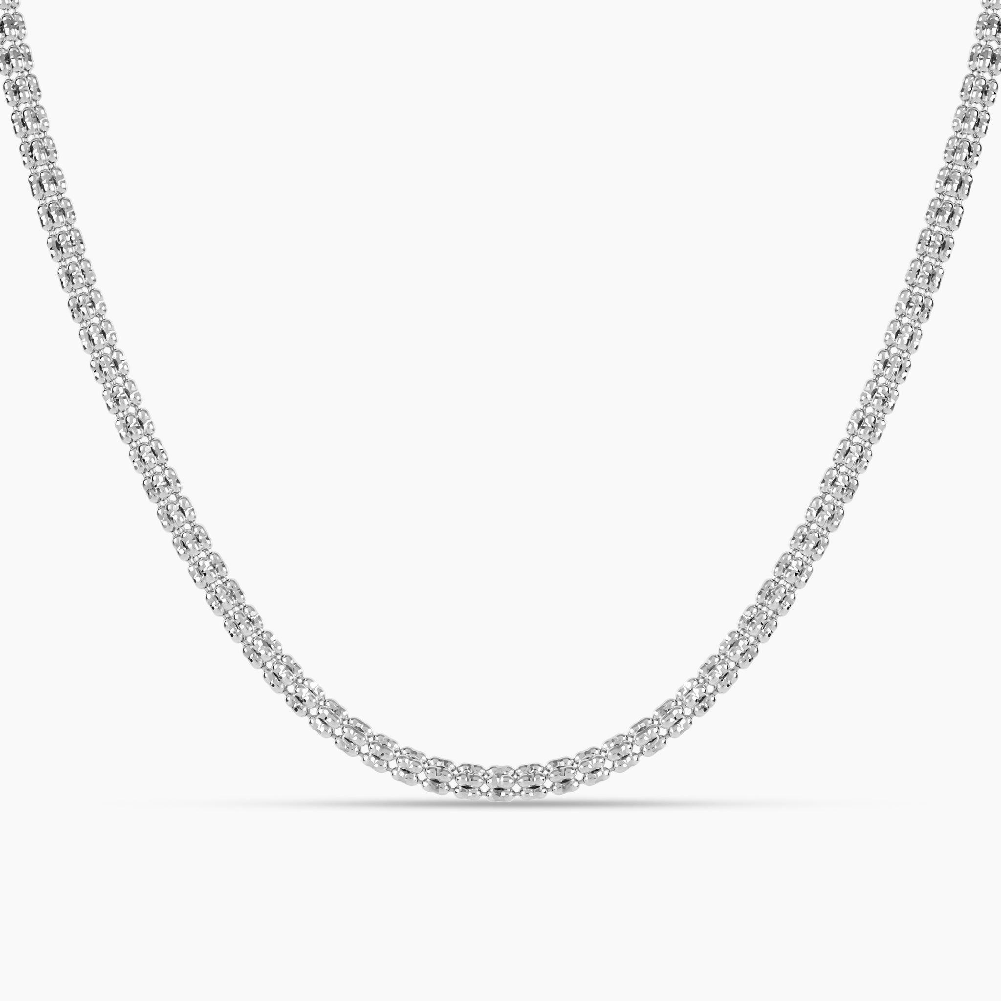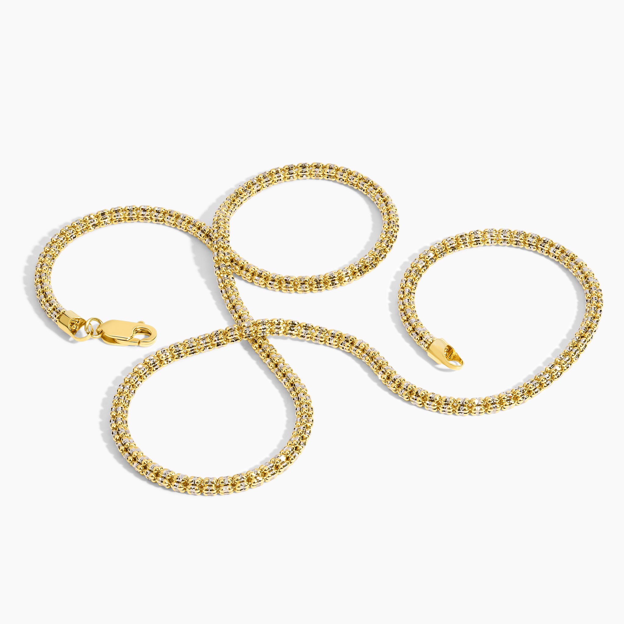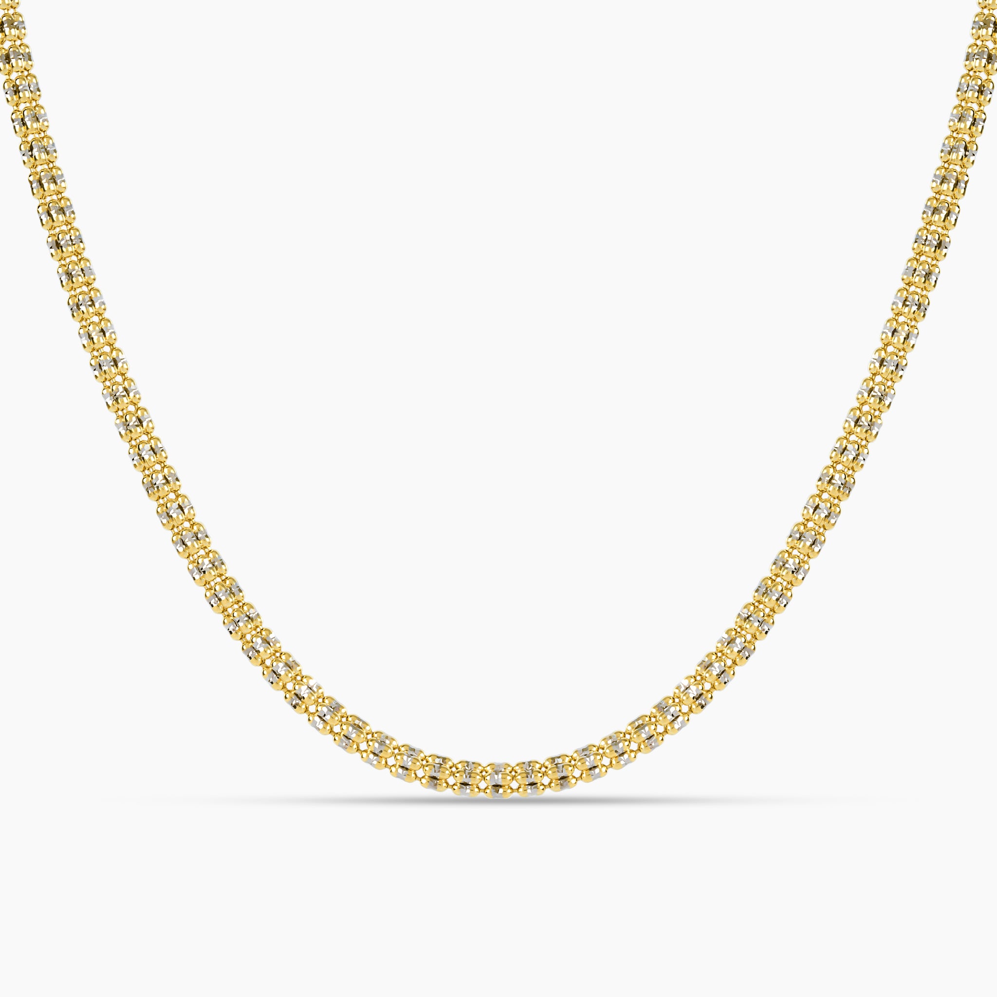 A stunning two-tone ice link chain featuring intricate, diamond-cut beaded links that shimmer from every angle.